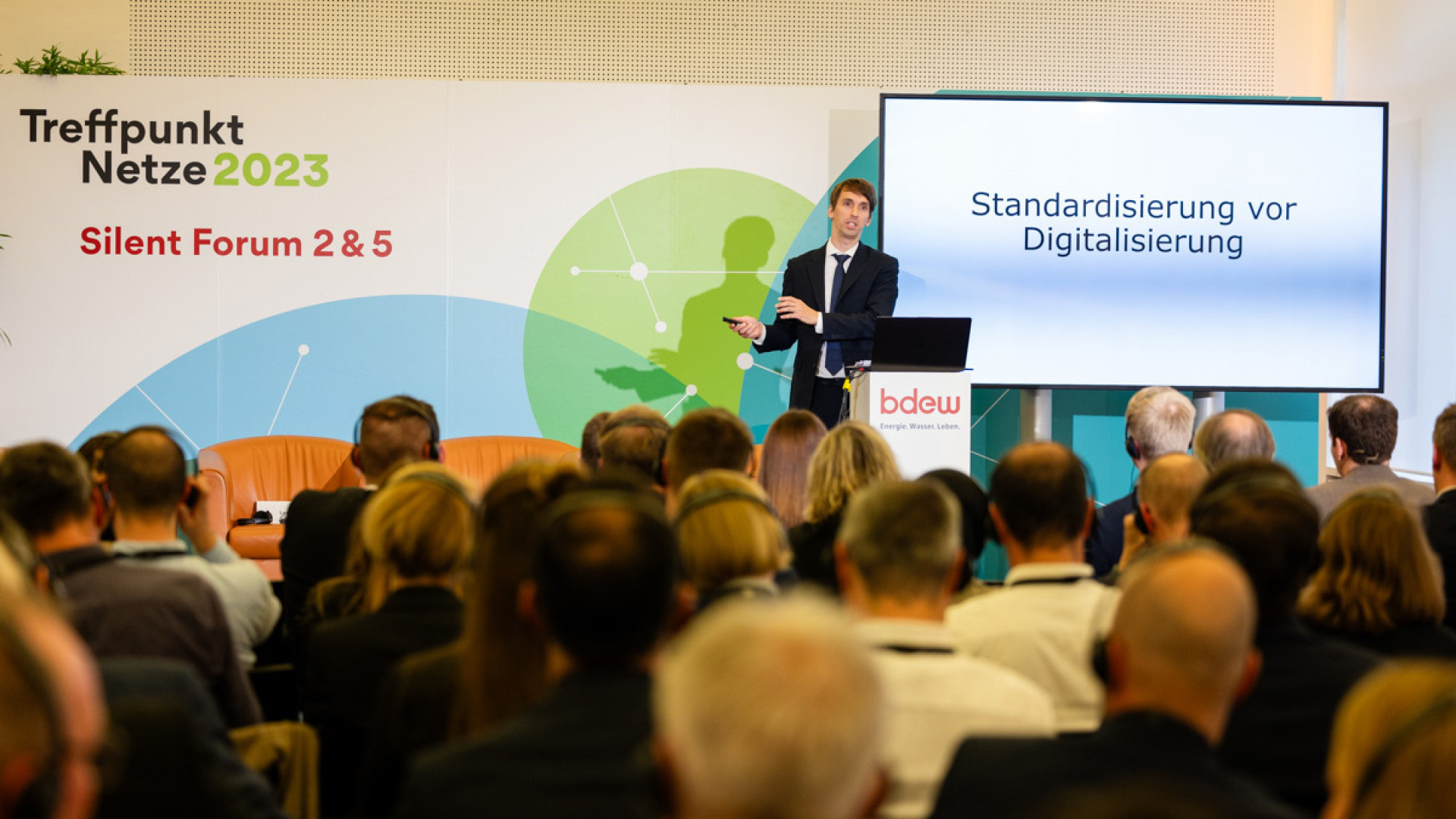 Dr. Christoph Müller hält einen Impulsvortrag auf dem Treffpunkt Netze 2023